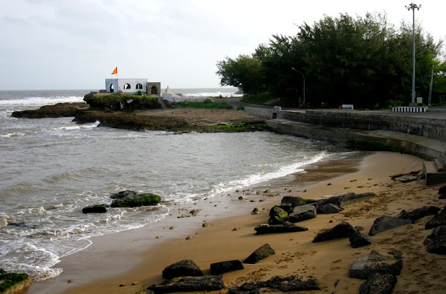 मंदिर अगदी समुद्र किनाऱ्यावर आहे, पुर्वी आलेली लोकं सांगत होती की भरतीच्या वेळेत पाणी मंदीरात शिरत असे. आता मात्र भर टाकून बहुतेक, समुद्रापासून थोड उंचावर वाटलं देऊळ. मस्त समुद्रजल शांतपणे हेलकावत होतं.. दूरवर काही नावा दिसत होत्या एकूण शांतता वाटत होती मनाला..